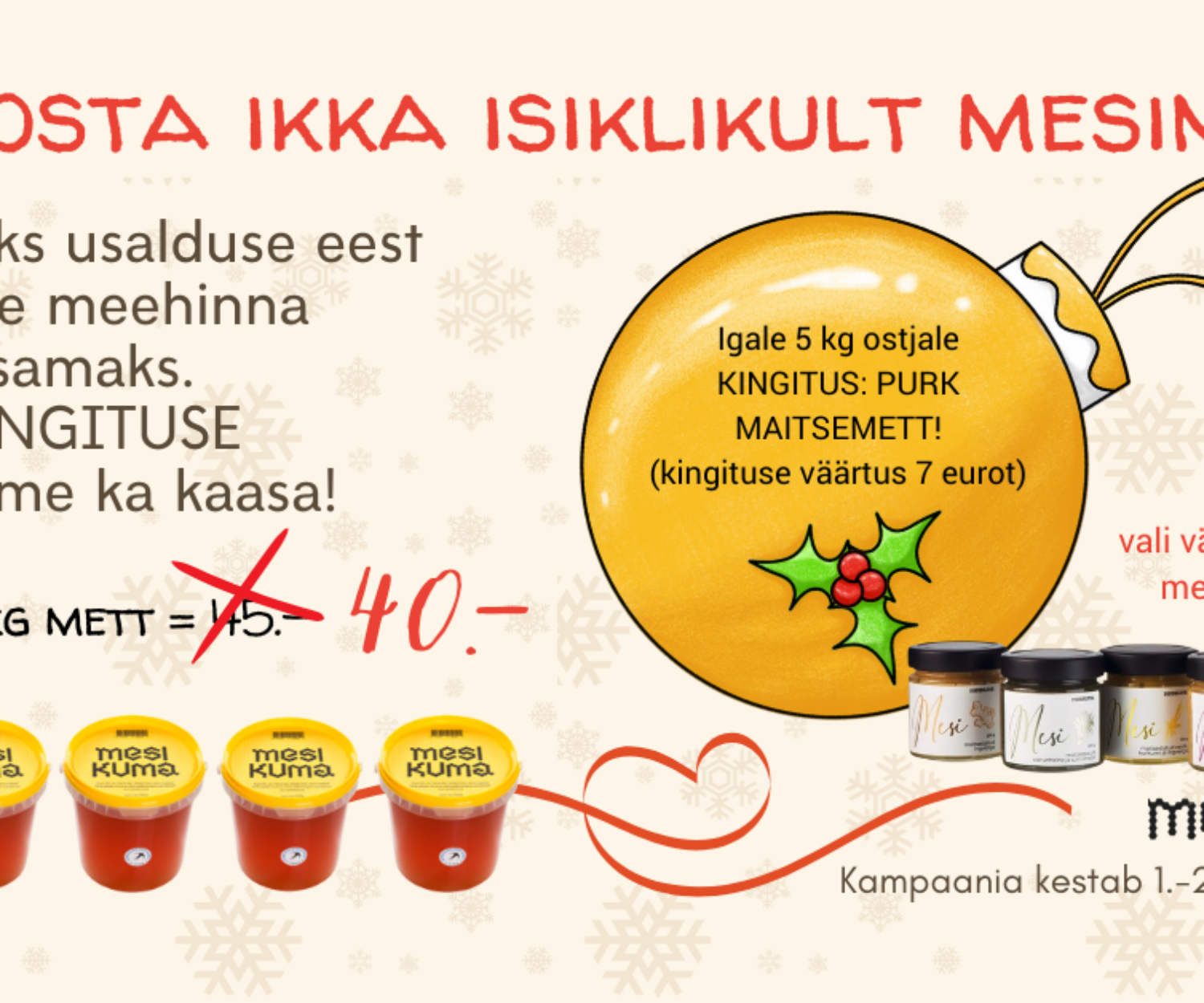 Meesõbrale, Mesiniku elu 12 dets. 2024 Kuidas osta mett (et mitte petta saada)? It's beginning to look a lot like Christmas everywhere you go .... Mesinikule tähendab see, et käes on klassikaline aktiivne meemüügi… Andres Tamla